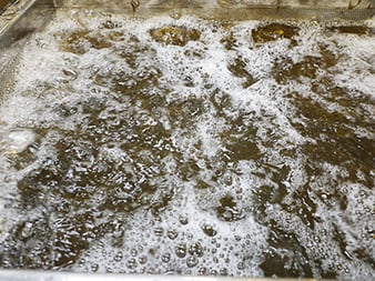 大量の空気と水流を使ったバブリング洗浄で、デリケートなもずくをきめ細かに洗浄します。